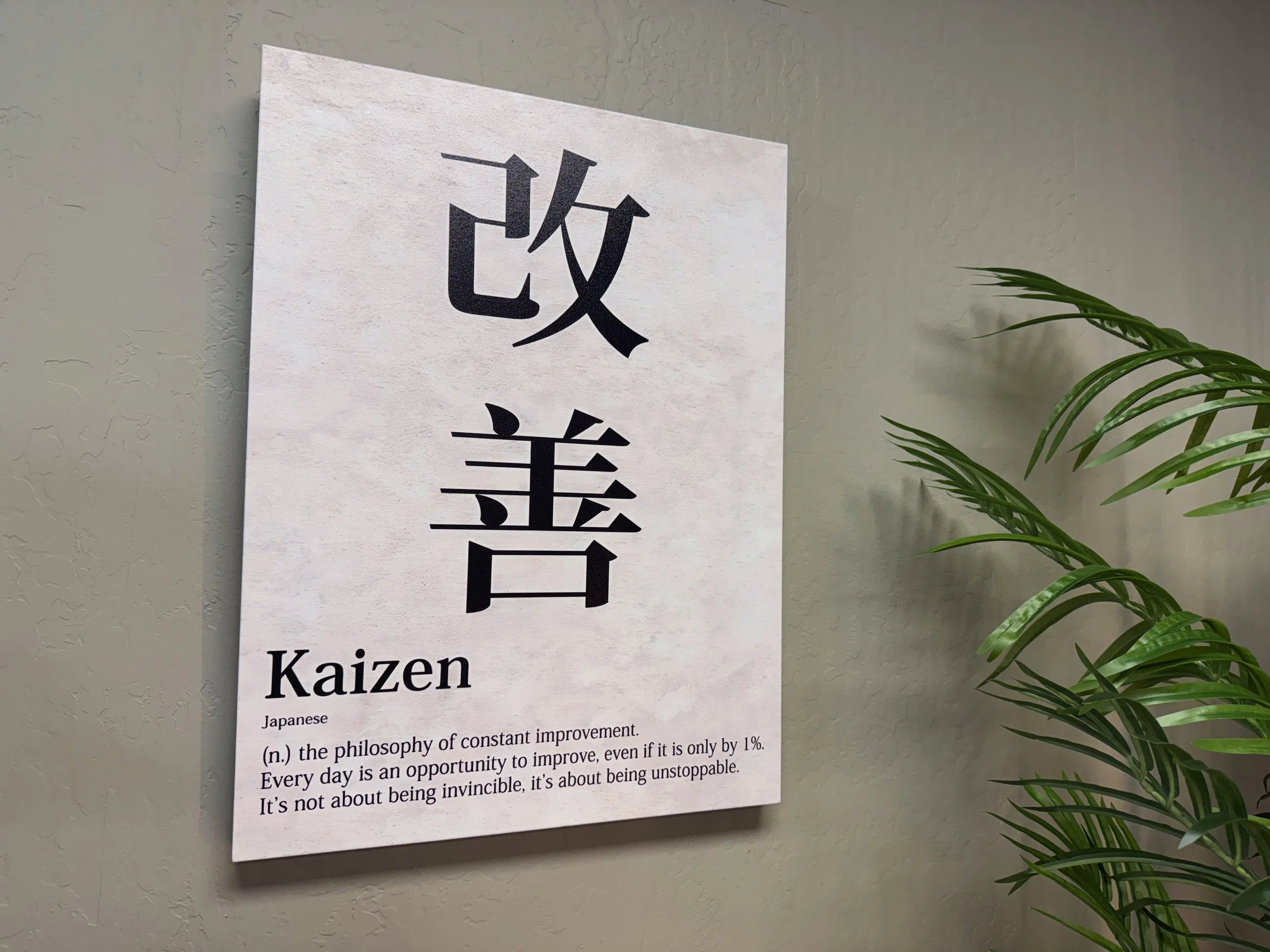 These walls carry the spirit of Kaizen — a reminder that progress isn’t measured in leaps, but in daily steps forward. Many of these pieces were gifts from clients, symbols of trust, gratitude, and the climb we share together.